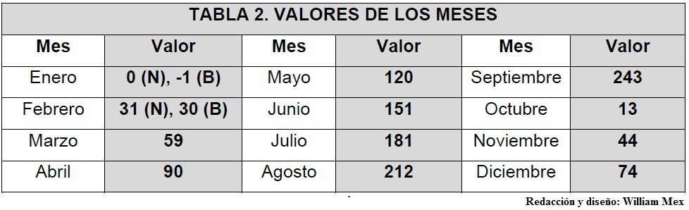 Se hacen observaciones después de cada trecena (en amarillo, las cantidades a sumar, usando la Tabla Tzolk’in):